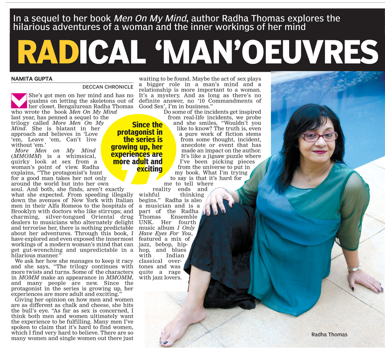 Radical Maneuvres DNA, Bangalore, Sunday Aug 10, 2014, by Namita Gupta Share this: Share on Facebook (Opens in new window) Facebook Share on X (Opens in new window) X Like Loading... Related Posted In:BOOKSMore Men On My MindTagged:bangaloreDeccan ChronicleMore Men On My MindNamita GuptaRadical Maneuvre
